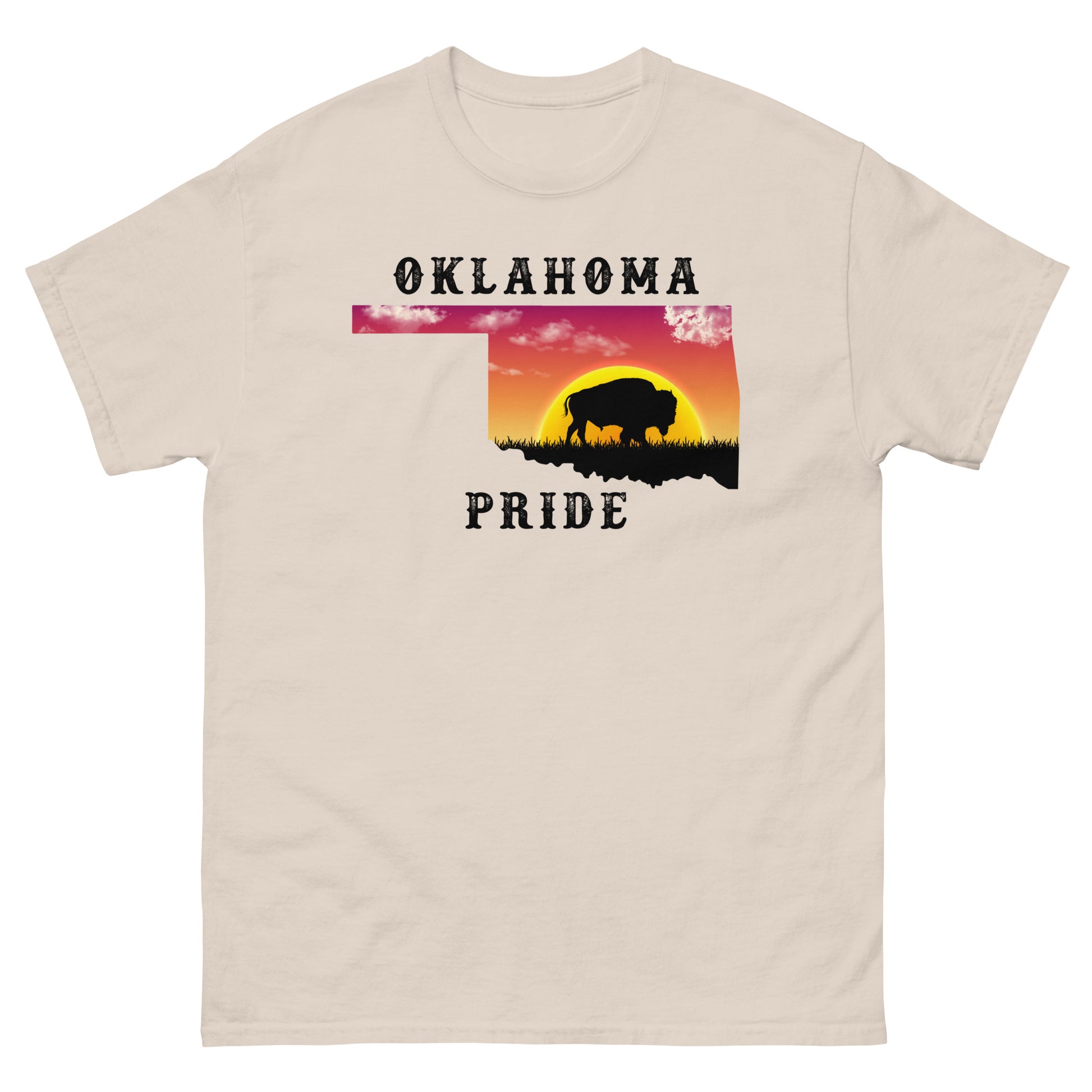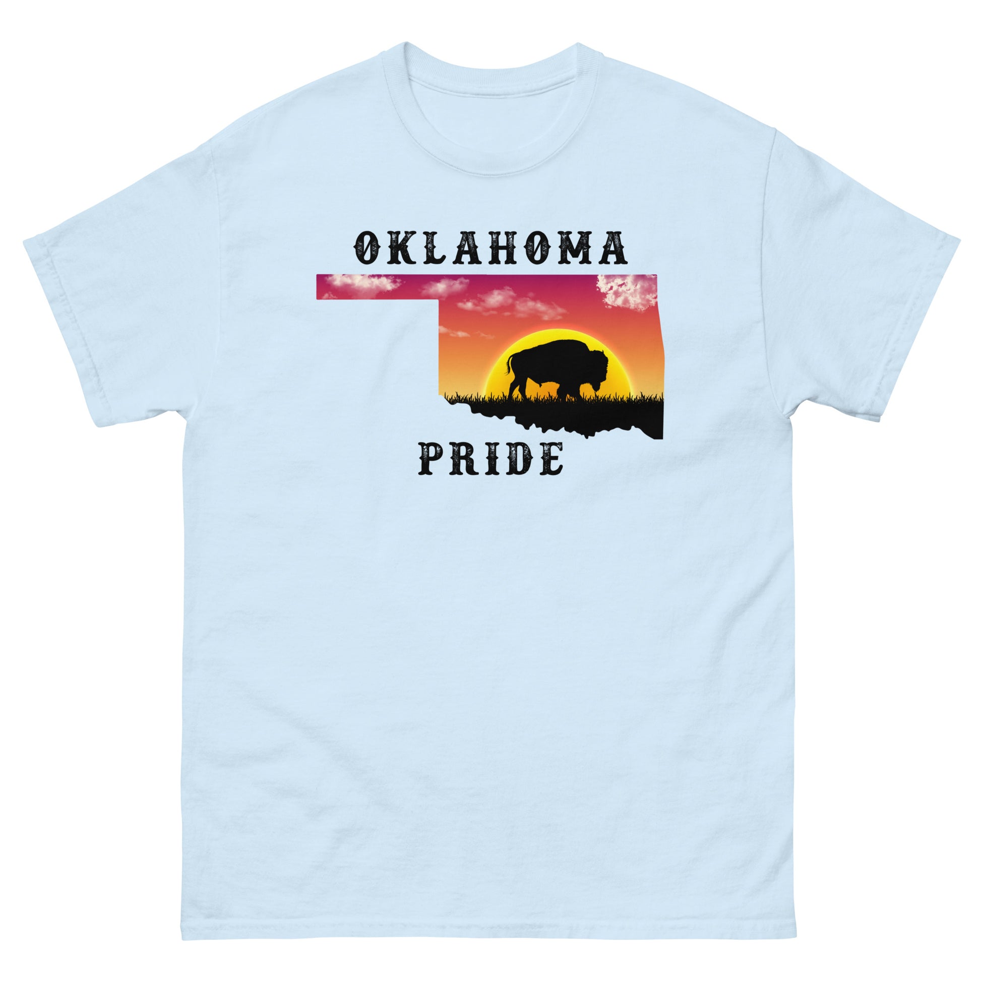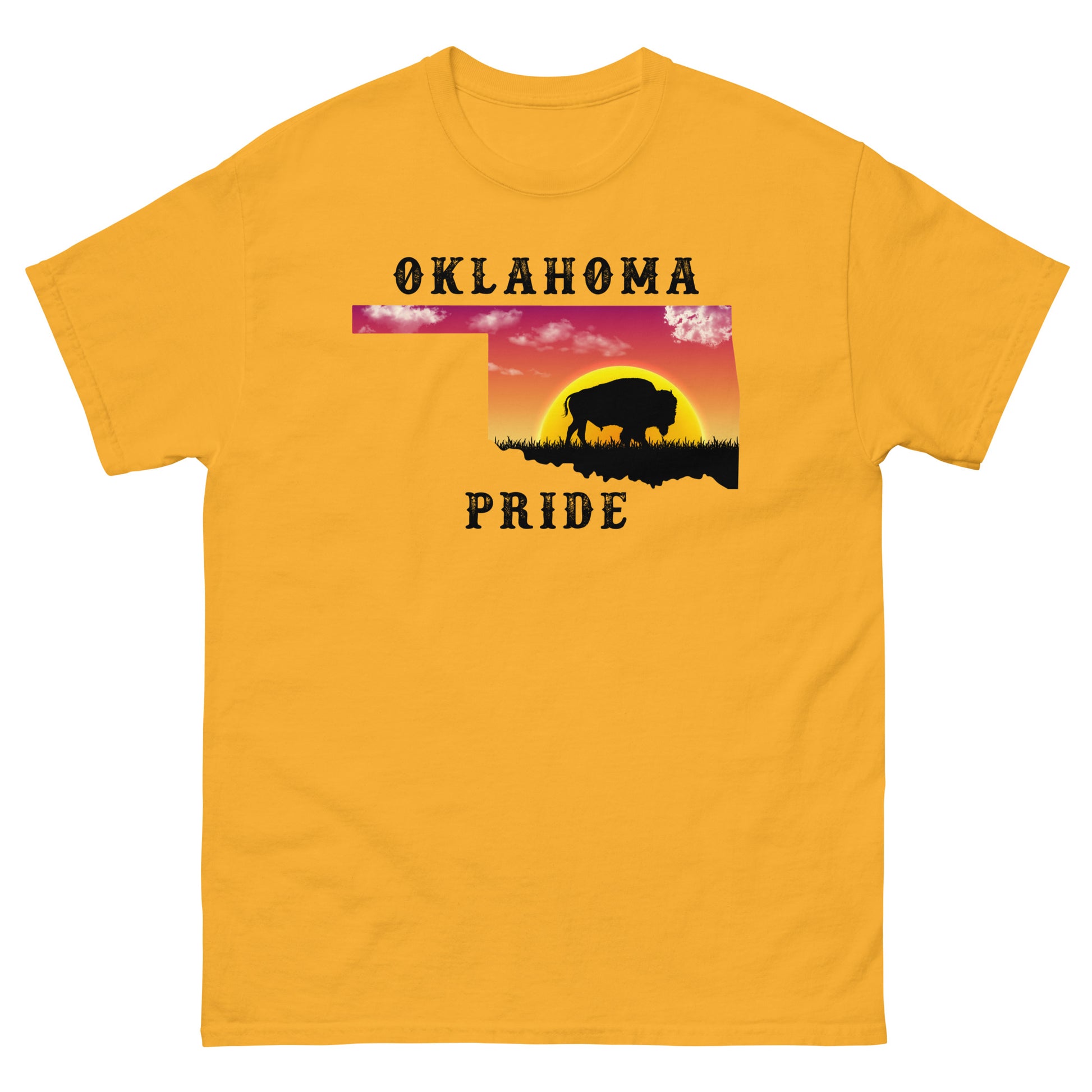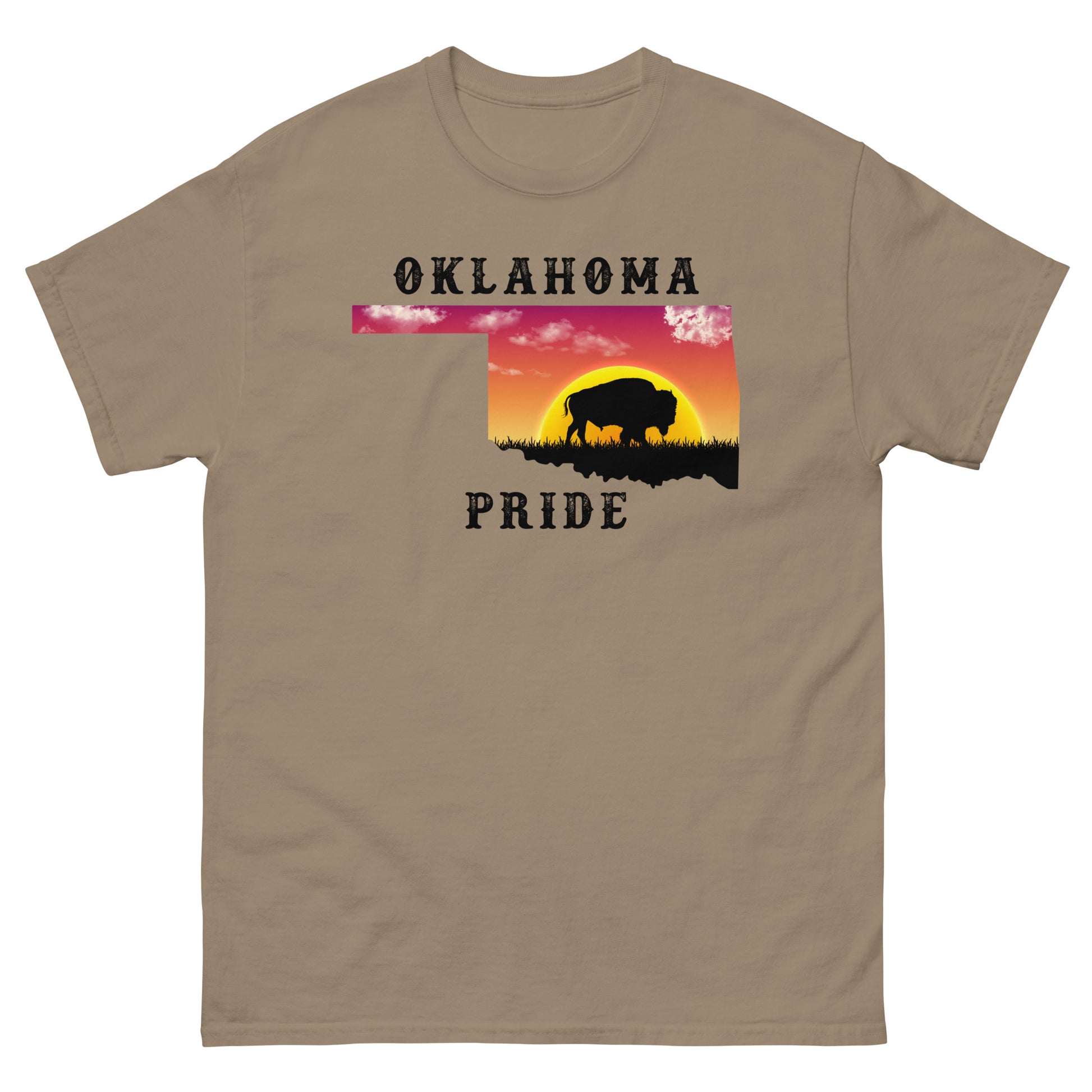 Show off your love for Oklahoma with this beautiful buffalo silhouette in the shape of Oklahoma. This shirt can only be found with Rogue Star Creations.